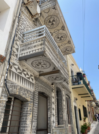 Pyrgi köyündeki evlerin dış cephe dekorasyonunda kullanılan süslemeler göz kamaştırıyor.