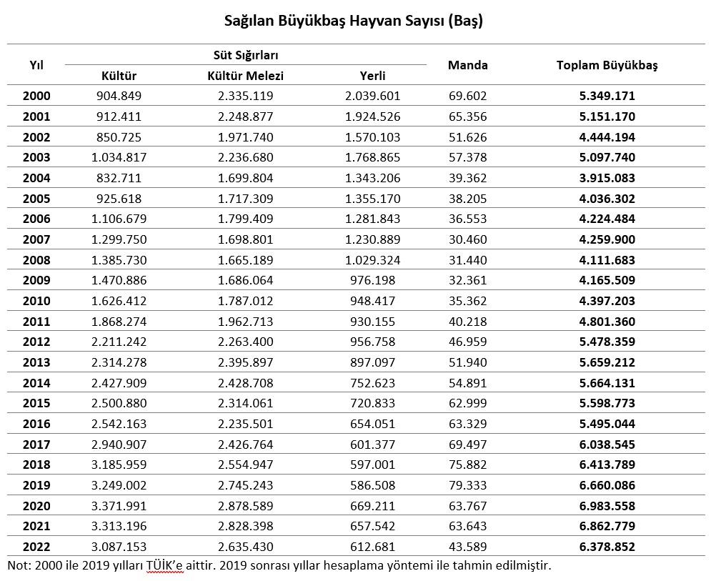 Aşağıdaki tablo büyükbaş hayvan sayısındaki değişimi net olarak ortaya koyuyor: