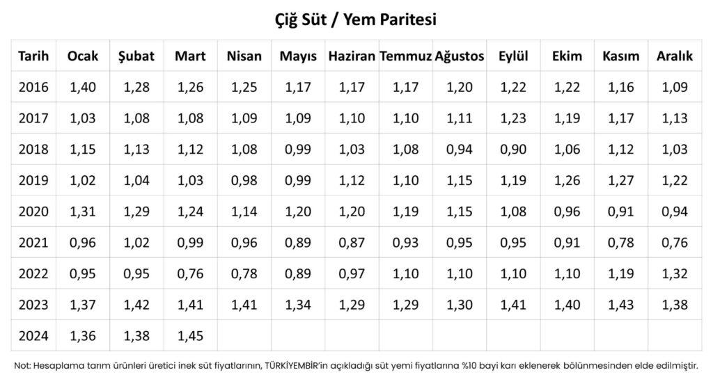 Sektör tarafından süt fiyatlarının uzun süredir her bir litrelik süt fiyatı ile 1,5 kilo yem alabilmesi isteniyor. Bunu da artan yem fiyatlarına karşı üreticinin korunması ve üretime devam etmesi için bir gereklilik olarak görülüyor. Tarım ve Orman Bakanlığı ise yayınladığı raporlarda ve bugüne kadar görev yapan bakanların açıklamalarında 1 kilo süt karşılığı 1,3 kilo yem alınmasının süt üreticisi için yeterli olduğunu savunuyor.