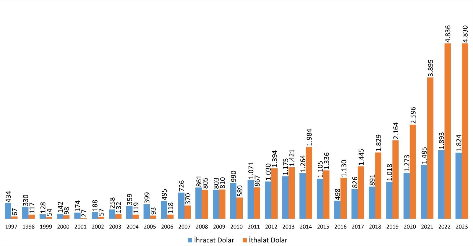 2023 yılında ise 1,8 milyar dolarlık ihracata karşılık 4,8 milyar dolarlık ithalat gerçekleştirdik. Son 12 yılda Rusya’ya verdiğimiz dış ticaret açığı 14,6 milyar dolara ulaştı. Ve bu açık her yıl artarak devam ediyor.