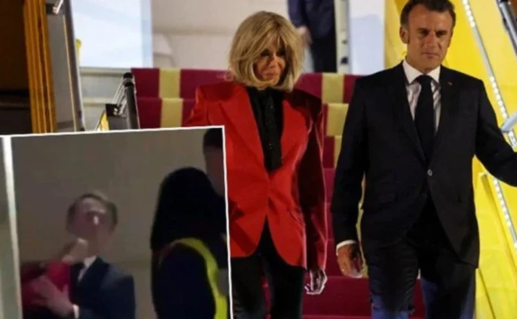 Fransa Cumhurbaşkanı Emmanuel Macron’un eşi Brigitte Macron, Vietnam ziyaretinde eşine uçaktan inerken minik(!) bir tokat patlattı. Her ne kadar tokat patlatma anında Brigitte uçağın içinde kamufle bir halde olsa da, kırmızı ceketinin görünen kolu fotoğrafçıların gözünden kaçmadı. Macron’un uçaktan inerken ki asık suratı da cabası.