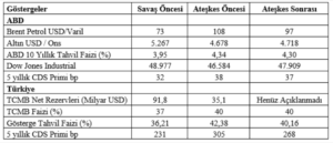 Aşağıdaki tablo, savaş öncesi, ateşkes öncesi ve ateşkes sonrasında ABD ve Türkiye açısından temel finansal göstergelerdeki değişimi ortaya koyuyor: