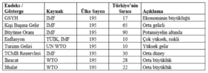 Bir ülkenin küresel konumunu anlamak için yalnızca ekonomik büyüklüğüne bakmak yeterli değildir. Ülkenin ekonomik durumu sosyal ve siyasal göstergelerle birlikte ele alınmalıdır. Çünkü sosyal ve siyasal göstergeler önünde sonunda ekonomiyi etkilemektedir.