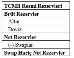 Burada sözü edilen rezerv tutarı olarak hangisinin alınacağı konusu değerlendirmeyi yapan analistin bakış açısına göre değişmektedir: Bazıları brüt rezervleri bazıları net rezervleri bazıları da swap hariç net rezervleri alarak karşılaştırma yapıyorlar. Biz burada üçünü de ele alacağız.