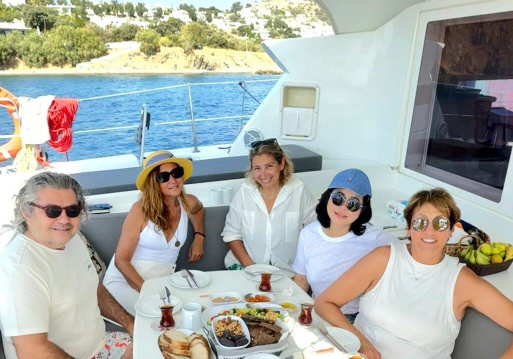 Murat Esin’in katamaranı Paluko ile gelmişiz. Yanımda Ürdünlü dostlarım Nadia Dajani ve Reema Ali, Londra’nın meşhur Thai Tho restoranının sahibesi Nicky, San Francisco’dan Bahar Özgür var.