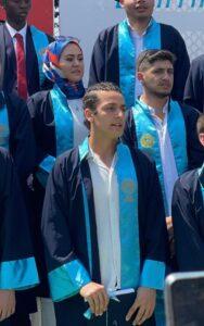 O ise, Fakültenin birincisi olarak diploma almaktadır..