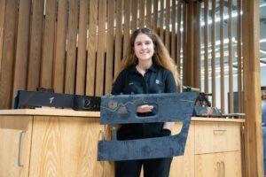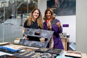 Az önce otomobilin içinde gördüğümüz ve üzerinden altın bir çizginin dalgalanarak geçtiği bir paneli masa üstünde incelemeye başlarken, tatlı bir “merhaba” sesine doğru dönüyoruz. Karşımızda Bespoke İç Yüzey Planlayıcısı İlayda Özaltan.