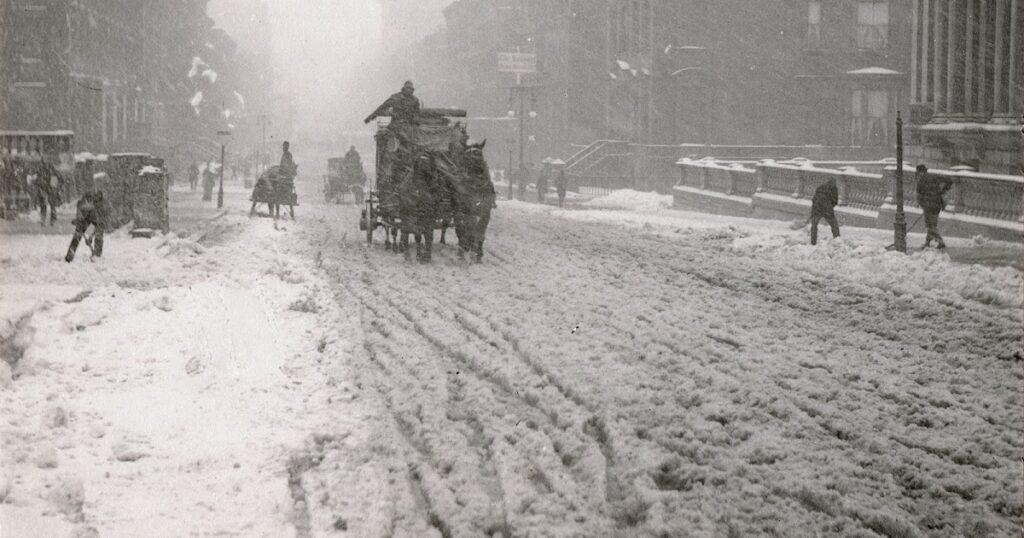 Bu kareyi bulabilmek için Beşinci Cadde ile 35’inci sokak köşesinde ağır bir kar fırtınası altında tam üç saat beklemiş sanatçı. Sonuçta hava durumu nedeniyle kendiliğinden oluşan bulanık görüntü fotoğrafa empresyonist resim kalitesi de vermiş. (Ara Güler’in karlı günlerde çekmiş olduğu İstiklal Caddesi fotoğraflarında da bu hava vardır.)