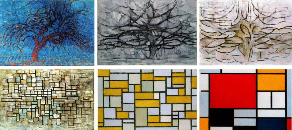 Mesela Mondrian 1908’den itibaren bir dizi ağaç düzenlemeleri resmi serisi yapmaya başladı. Sanatçının buradaki amacı, fenomenolojik yöntemde olduğu gibi, ağaç deneyiminden hareketle yaşamın akışında değişmeden kalan ağacın özünü ortaya çıkarmaktı. İlk resimdeki ağaç hepimizin hemen tanıyacağı formdaydı. Ancak dizi 1913’e gelindiğinde resimdeki ağaç neredeyse tanınmaz haldeydi. Aynı şekilde De Stilj dergisinin kurucusu ressam van Doesburg soyutlama sürecini kullanarak resmi tanınabilir özeklerinden soymayı Mondrian gibi denemiştir Cows tablosunda. İneğin özüne ulaşmayı amaçlayan resim sonunda ineğin her türlü tanınabilir özelliklerinden yoksundur. Aynı Mondrian’ın ağacı gibi.