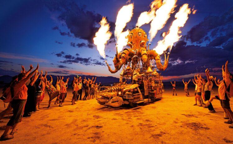 “Burning Man” festivalini düzenleyenler çölün yaratıcılığı nasıl tetikleyebildiğini ve çöl ortamının aslında Amerikan yaratıcılığının ortamı olduğunu iyi biliyordu. Festivalin tarihçesi şöyle: 1986 yılında San Francisco’da Baker Plajı’nda toplanan 20 arkadaş sahilde tahtadan yapılmış bir adam heykeli yakmış. Ondan sonra her yıl bir araya gelip bir festival coşkusu içinde aynı yakma ritüelini tekrarlamaya karar vermişler. Ama bu tahta adam yakma eylemine hippiler, anarşistler ve özgürlükçü düşünürler de katılmaya başlamış ve katılanların sayısı her yıl artmış. Sayıları on binleri bulunca tabii ki plaj yetmemeye başlamış. Ve festivalin Nevada’nın Red Rock Çölü’ne taşınıp her yıl orada toplanmaya karar verilmiş. Her yıl ağustos ayının son haftasına gelindiğinde çölün belirlenen bir noktasında, altyapısı yani kanalizasyonu ve su sistemi olan orta büyüklükte bir çadır kent oluşturuluyor. Çöl kentinde son yıllarda küçük bir uçak pisti bile inşa edilmeye başlanmış.