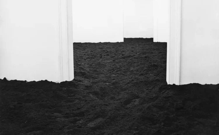 Sanatçı bu sergisinde galerinin bütün odalarının zeminini gübreli toprak ile kaplamıştı, o kadar