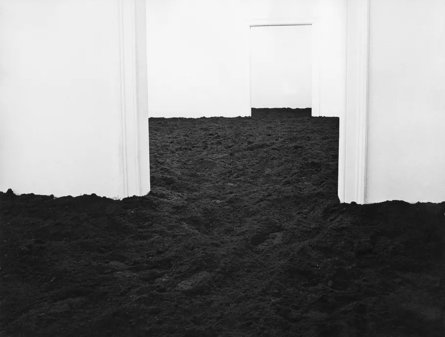 Sanatçı bu sergisinde galerinin bütün odalarının zeminini gübreli toprak ile kaplamıştı, o kadar