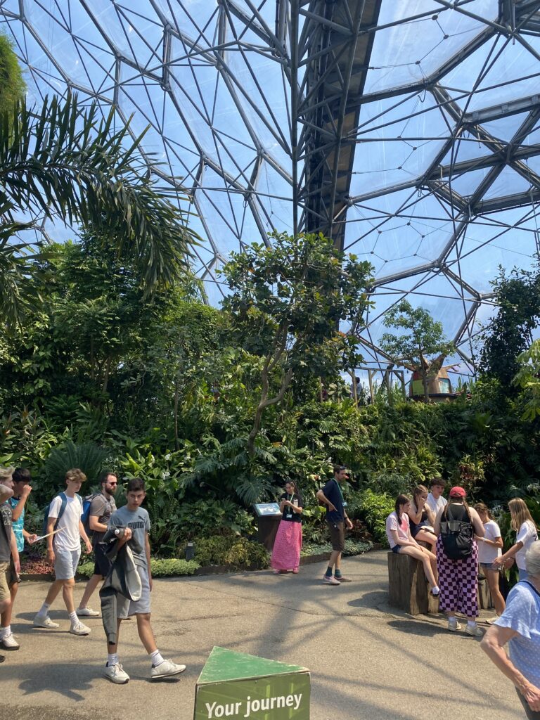 Bu dev küresel bahçeyi gezmek bir tam günümüzü aldı, eski kil maden ocağına inip önce yağmur ormanları bitki örtüsünün olduğu çelik konstrüksiyondan oluşan dev serayı rehber eşliğinde gezdik. Bu bahçede bu coğrafyada yetişmesi imkansız olan vanilya, kahve gibi yüzlerce bitki ve ağaç türünü inceledik. Doğa şartları ve ısı gerçek şartlarla bire bir uyumlanmış. İkinci dev serada ise Akdeniz, Amerika, Afrika bitki örtüsünde yetişen bitki ve ağaç çeşitlerini gezdik. Yüzlerce insan ve çocukla birlikte onlarca yıl alacak dünyanın en önemli bitkilerini bir gün boyunca inceleme, koklama, onlara dokunma şansımız oldu.