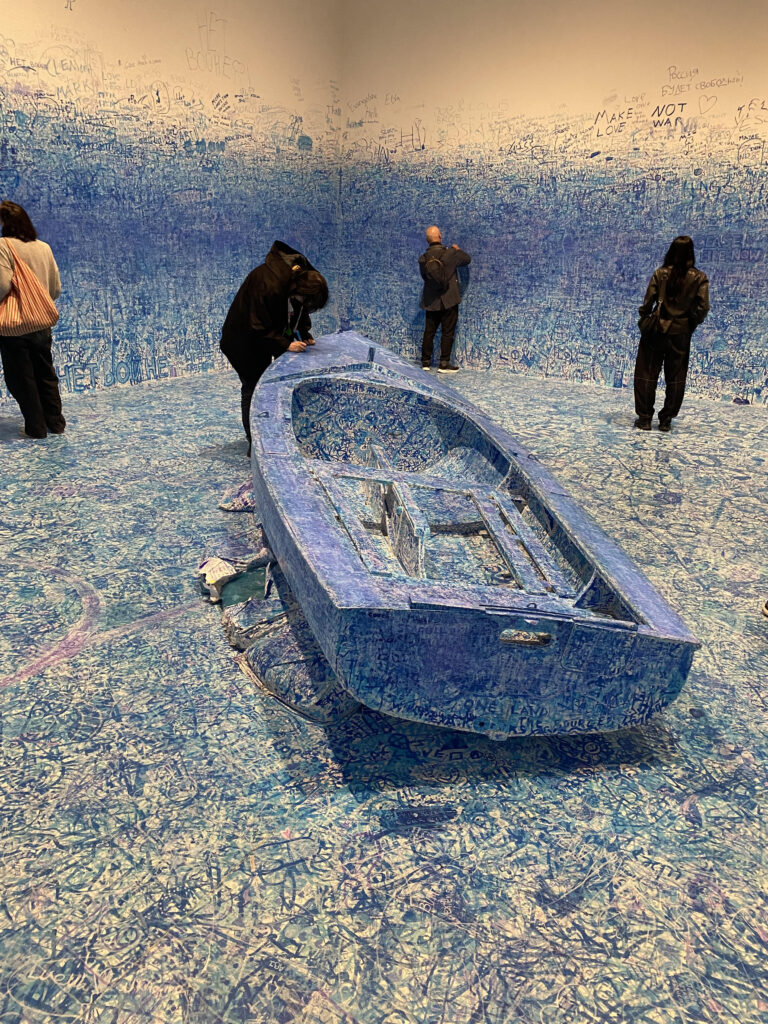 Tate Modern Yoko Ono sergisinde herkesin mavi kalemle ismini yazarak yarattığı odadan.