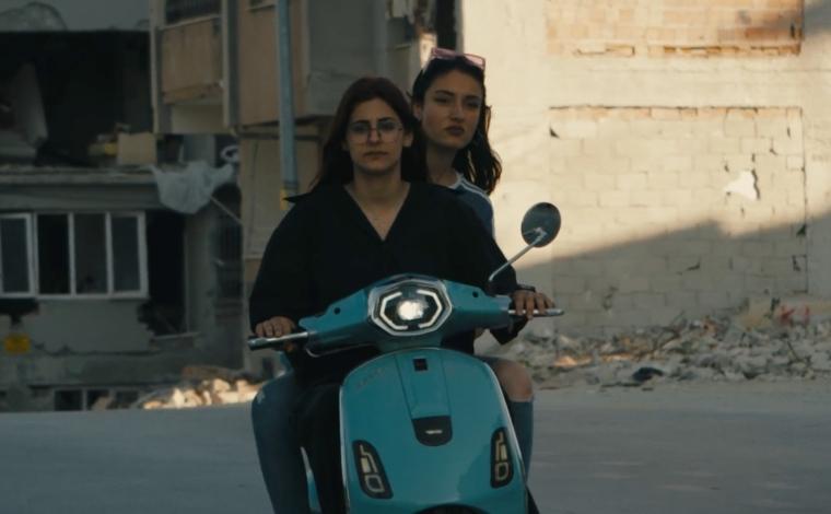 Mavi bir vespanın üstünde iki genç kız görüyoruz mesela. Deprem olmasa o sabah kalkıp dersaneye gideceklerdi. Ama şimdi yıkılmış sokakların arasından saçları uçuşa uçuşa geçerken bambaşka şeyler anlatıyorlar.