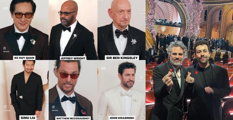 Gözleriniz sımsıkı kapalı değilse takım elbiselerde açan çiçekleri, en şık smokinlerin yakasına yapışan böcekleri görmemeniz imkansız. Mark Ruffalo’nun yakasındaki çiçek formundaki broş da onlardan sadece biriydi. ‘Zavallılar’ (Poor Things) filmindeki rolüyle En İyi Yardımcı Erkek Oyuncu ödülü için yarışan aktör bir de kırmızı rozet takmıştı. O da İsrail – Filistin savaşı için ateşkes çağrısı. Nitekim o gece çok sayıda yıldızın yakasında bu rozet vardı.